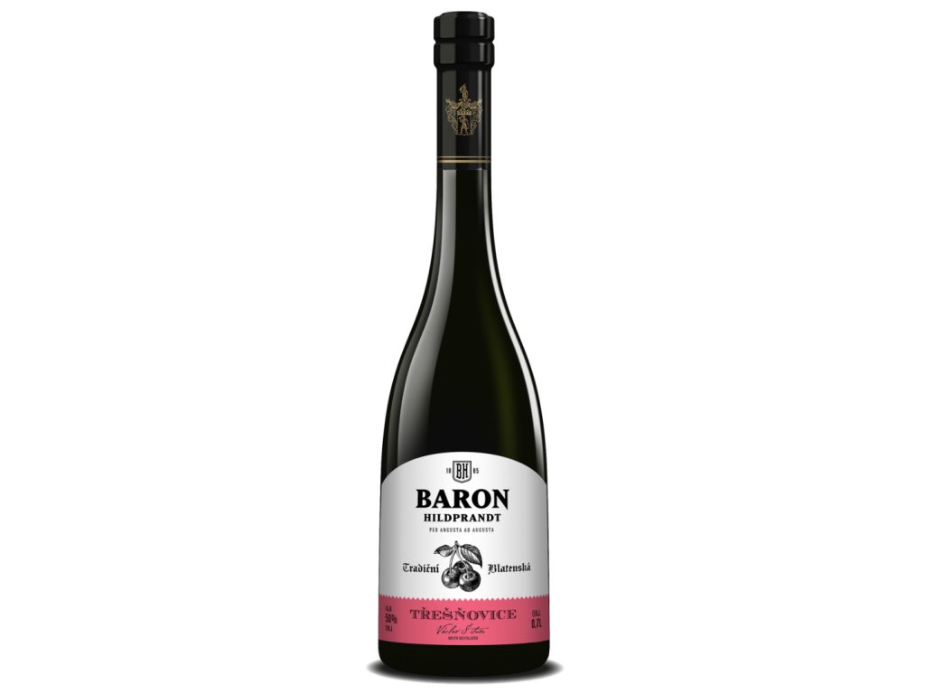 Prvotřídní ovocná pálenka Baron Hildpbrandt Třešňovice 50 % je vyrobena z výběrových třešní z jižních Čech. Ruční rodinná malovýroba je zárukou výjimečnosti a díky trojnásobné destilaci jsou odstraněny nežádoucí látky způsobující nevítané chutě či vůně.