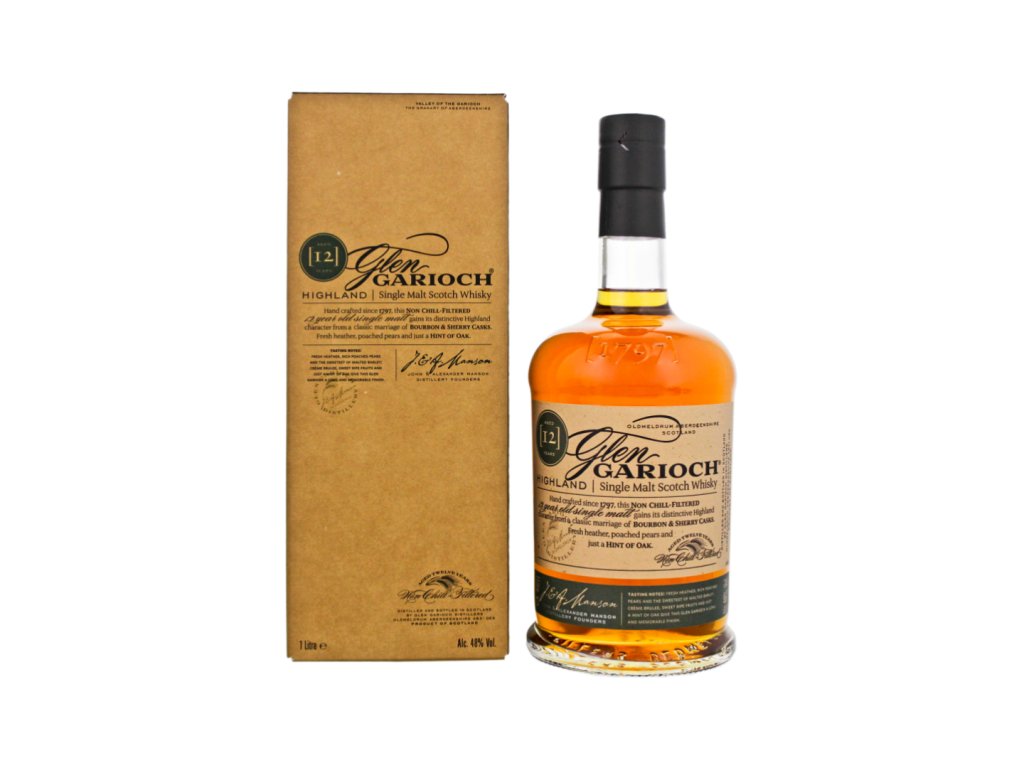 Glen Garioch distillery je jednou z nejdéle fungujících skotských palíren v oblasti Highlands. Single malts whisky zde vyrábí pouze v malých dávkách a lahvují jako non chill-filtered whisky. Glen Garioch 12 YO získává osobitý charakter stařením ve dvou druzích sudů: nejprve v sudech po americkém bourbonu a poté v sudech po španělském sherry. Sudy po bourbonu whisku zjemní, zatímco sudy po sherry dodávají výsledné chuti hloubku a intenzitu. Pro tuto whisku je typické aroma čerstvého vřesu, chuť hrušek s tóny dubu.