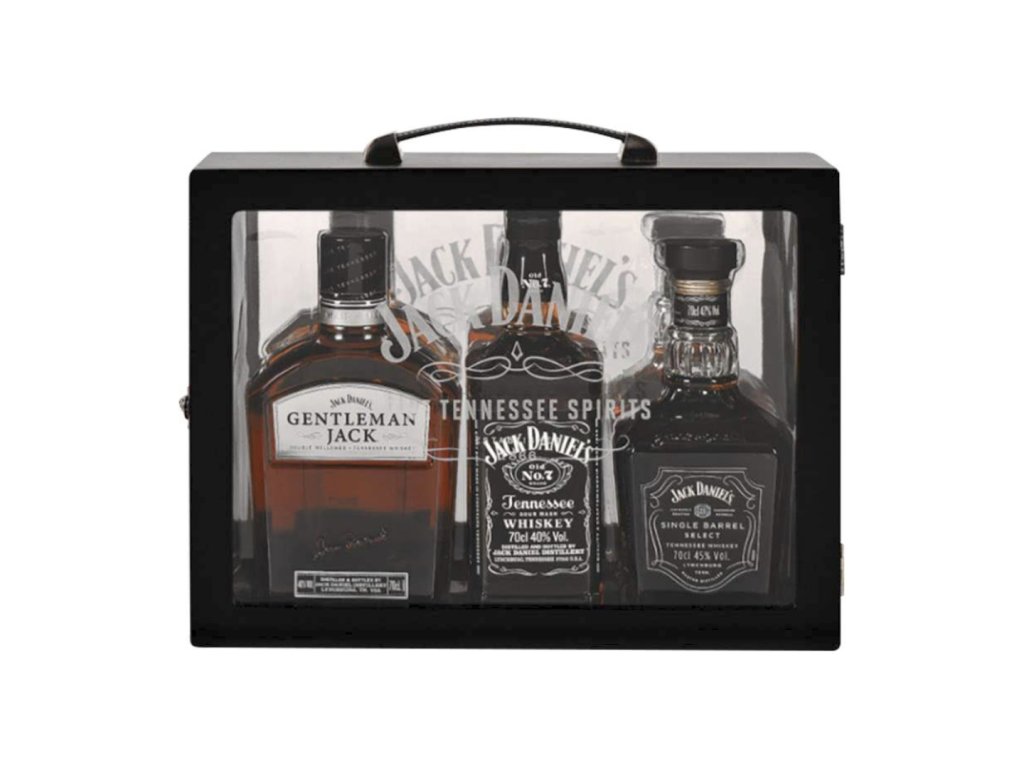 Stylový dárkový kufr pro všechny milovníky legendární palírny Jack Daniel's. V tomto kvalitně zpracovaném dárkovém boxu nalezneme nejznámnější počiny této značky: Jack Daniel's 0,7 l, Jack Daniel's Single Barrel 0,7 l a Jack Daniel's Gentleman Jack. Skladem je pouze několik kusů, pospěšte tedy, ať na vás zbude. Jack Daniel's Tennesse whiskey je jedním z nejprodávanějších bourbonů na světě. Zraje v sudech z bílého limousinského dubu, který mu dodává výslednou jemnou chuť. Doba zrání není přesně daná, whiskey se stáčí, až ji ochutnávači uznají zralou. Tennessee whiskey si nejlépe vychutnáte na ledu. Jack Daniel's Gentleman Jack voní po karamelu a ovoci, zejména černém rybízu a mandarince. Tělo má měkké a hedvábné. Chuť je delikátní, vyvážená, výrazně karamelová, s náznakem vanilky a kouře. Závěr je jemně kouřový a rybízový. Jack Daniel´s Single Barrel je špičkový výrobek a za svůj vznik vděčí panu Jimmy Bedfordovi, který byl šestým sklepmistrem v historii. Na základě svých dlouholetých zkušeností vybíral sudy a porovnával jejich drobné rozdíly. Každá láhev má ručně nalepenou etiketu s číslem sudu. Jednotlivé sudy mají trochu odlišnou chuť i vůni. Můžete postupně porovnávat. Chuť je karamelová s nádechem vanilky, občas s příchutí dubu nebo ovoce.