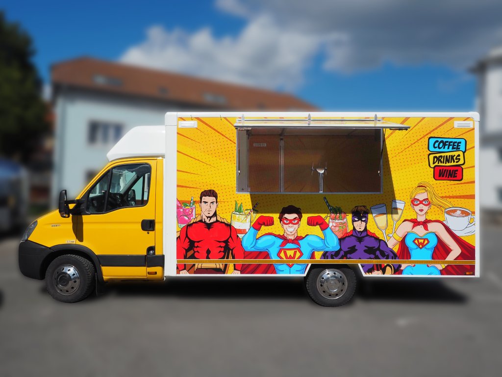 Prodejní auto s barovým vybavením 7,5m (hrdinský polep)